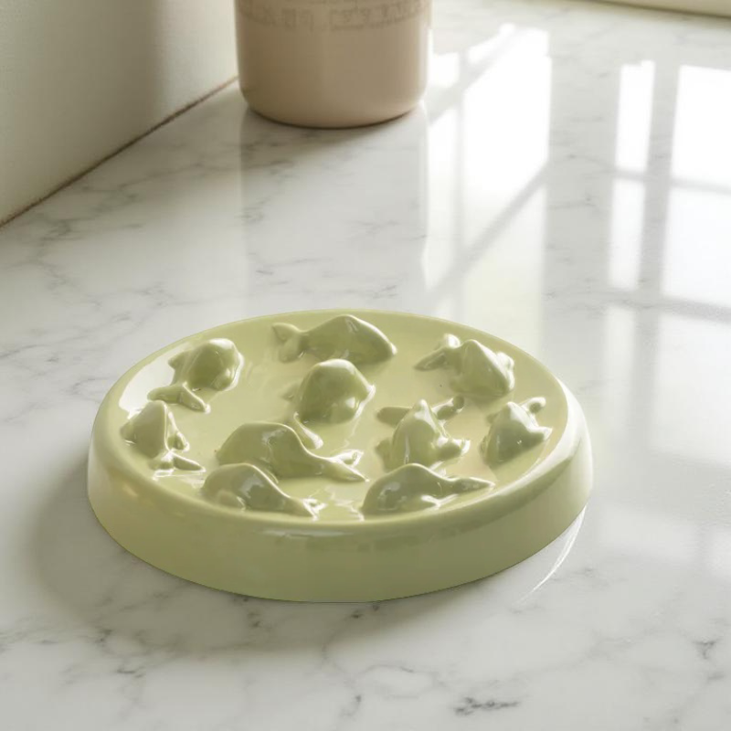 La PacePlate Vert est une assiette anti-glouton en céramique élégante, pensée pour ralentir l’ingestion de votre animal. Avec son diamètre de 23 cm et ses reliefs sculptés en forme de poissons 🐟, elle transforme chaque repas en une expérience plus lente, plus saine et sans risque d’étouffement. Sa couleur verte 🍃 apporte une touche zen et naturelle à votre intérieur, tout en offrant à votre chat ou chien une gamelle esthétique et fonctionnelle.