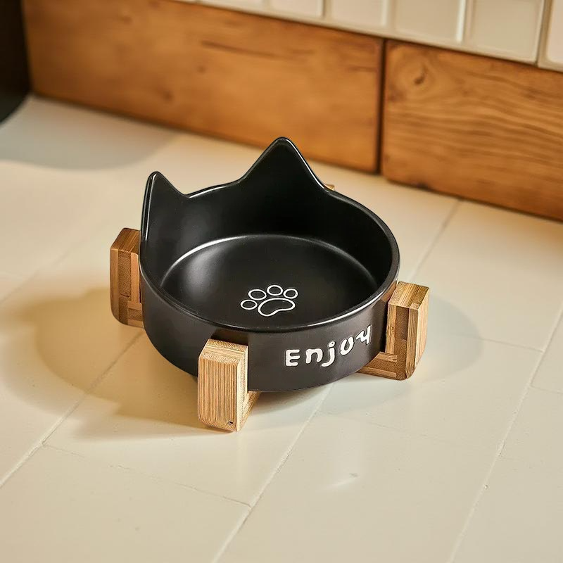 La BambooKit Simple Noire est une gamelle en céramique posée sur un support en bambou antidérapant qui apporte hauteur, stabilité et style à l’heure du repas. Avec sa capacité de 200 ml, votre chat accède facilement à la nourriture dans une posture plus naturelle, limitant les débordements et la pression cervicale. La céramique est lisse, inodore et facile à nettoyer, tandis que le coloris noire et le motif empreinte 🐾 “Enjoy” ajoutent une touche kawaii à votre intérieur.