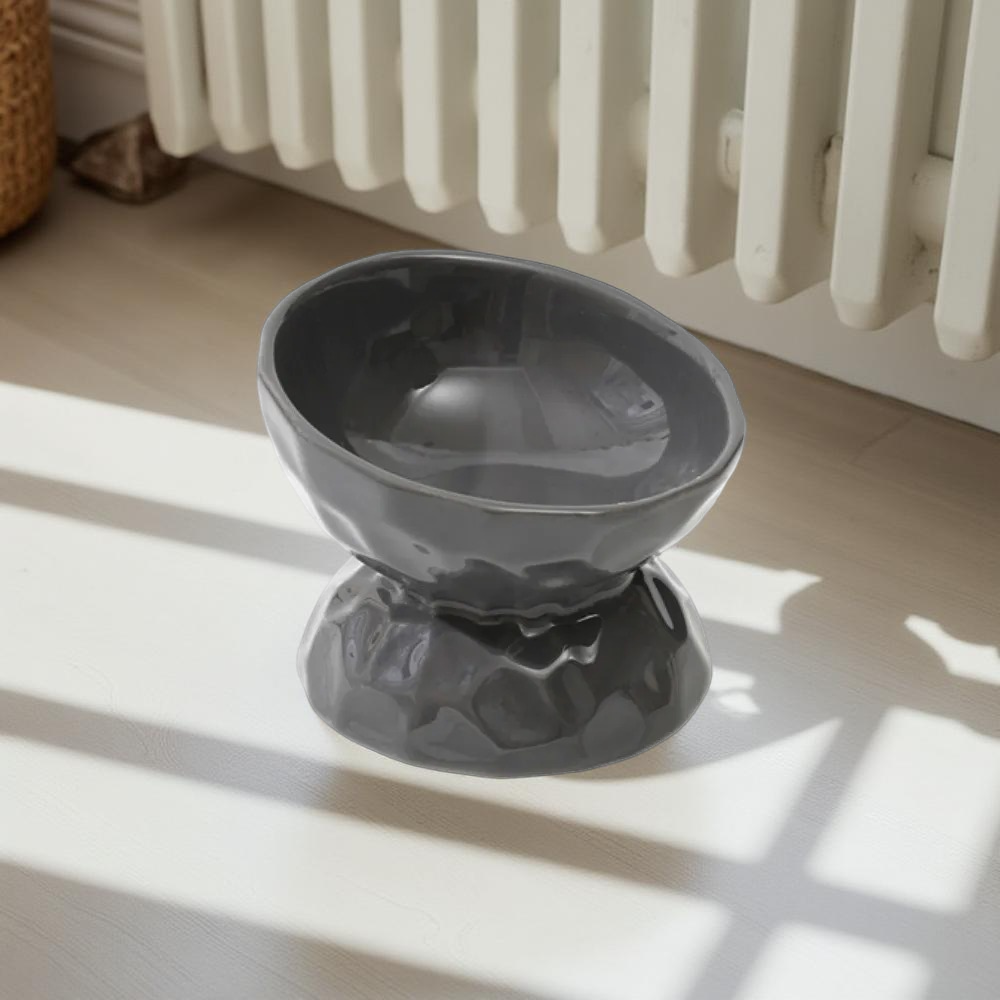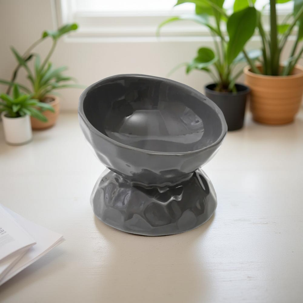 La TerraBowl Tilt Noir est une gamelle céramique surélevée et inclinée qui combine confort et raffinement. Son inclinaison ergonomique soulage les cervicales de votre chat ou petit chien, favorisant une meilleure digestion et un repas sans effort. Avec son look martelé artisanal et sa finition noire brillante, elle apporte une touche moderne et premium à votre intérieur tout en restant stable et pratique.
